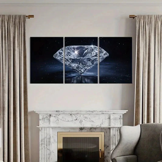 3pcs Luxury Diamond Crystal Gemstone Art Wall Art Set Canvas Framed 60x90cm - High Quality Print 100% Australian Made Wall Canvas Ready to Hang