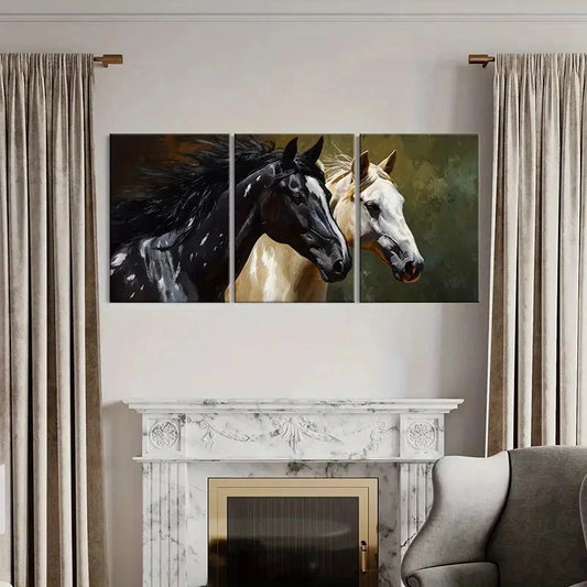 3pcs Black & White Animal Horses Artwork Wall Art Set Canvas Framed 60x90cm - High Quality Print 100% Australian Made Wall Canvas Ready to Hang