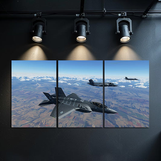 3pcs Photo of An F35 and N Ma Package Flying Wall Art Set Canvas Framed 60x90cm - High Quality Print 100% Australian Made Wall Canvas Ready to Hang