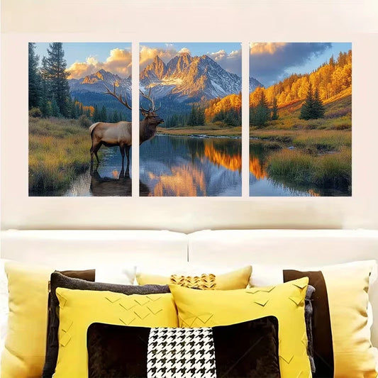 3pcs Rocky Mountain National Park Majestic Elk Wall Art Set Canvas Framed 60x90cm - High Quality Print 100% Australian Made Wall Canvas Ready to Hang