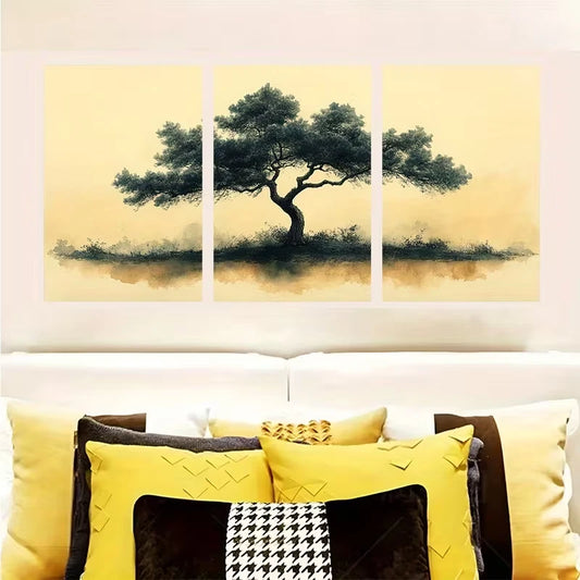 3pcs Featuring Sketches of Black Pine Trees Wall Art Set Canvas Framed 60x90cm - High Quality Print 100% Australian Made Wall Canvas Ready to Hang