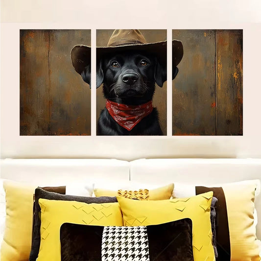 3pcs Western Cowboy Black Labrador Wall Art Set Canvas Framed 60x90cm - High Quality Print 100% Australian Made Wall Canvas Ready to Hang
