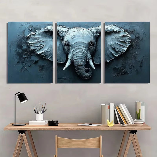 3pcs African Elephant Impasto Oil Painting Wall Art Set Canvas Framed 60x90cm - High Quality Print 100% Australian Made Wall Canvas Ready to Hang
