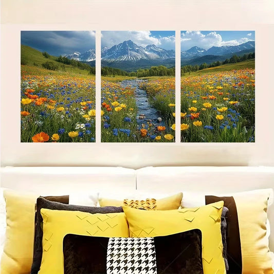 3pcs Vibrant Spring Landscape with River & Moun Wall Art Set Canvas Framed 60x90cm - High Quality Print 100% Australian Made Wall Canvas Ready to Hang