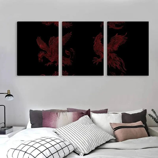 3pcs Red Vector Drawing Set Art Wall Art Set Canvas Framed 60x90cm - High Quality Print 100% Australian Made Wall Canvas Ready to Hang