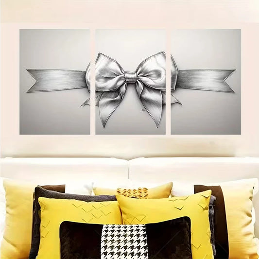3pcs Black and White Bow Sketch Ribbon Drawing Wall Art Set Canvas Framed 60x90cm - High Quality Print 100% Australian Made Wall Canvas Ready to Hang