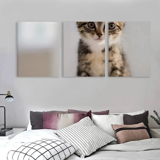 3pcs Modern Tabby Kitten Art Wall Art Set Canvas Framed 60x90cm - High Quality Print 100% Australian Made Wall Canvas Ready to Hang