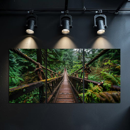 3pcs Vintage Wooden Bridge in British Columbia Wall Art Set Canvas Framed 40x60cm - High Quality Print 100% Australian Made Wall Canvas Ready to Hang