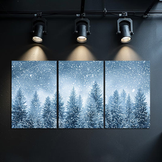 3pcs Snow-Covered Coniferous Trees in Winter Sky Wall Art Set Canvas Framed 40x60cm - High Quality Print 100% Australian Made Wall Canvas Ready to Hang