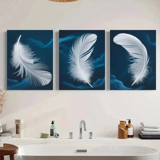 3pcs White Feather Canvas Wall Art Set Canvas Framed 40x60cm - High Quality Print 100% Australian Made Wall Canvas Ready to Hang