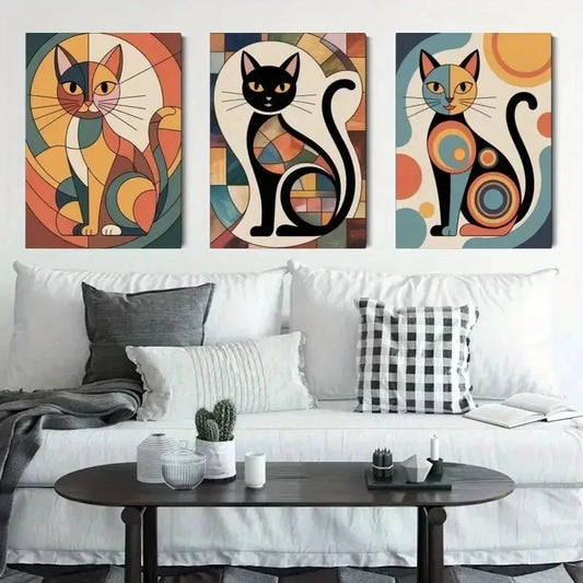 3pcs Abstract Cat Geometric Shapes, Color Block Wall Art Canvas Wall Art Set Canvas Framed 40x60cm - High Quality Print 100% Australian Made Wall Canvas Ready to Hang