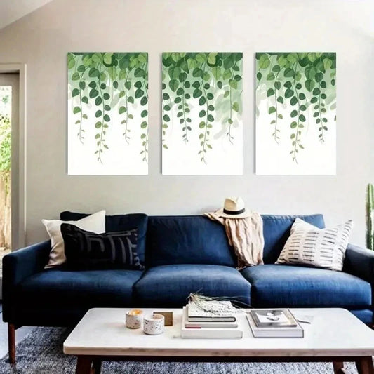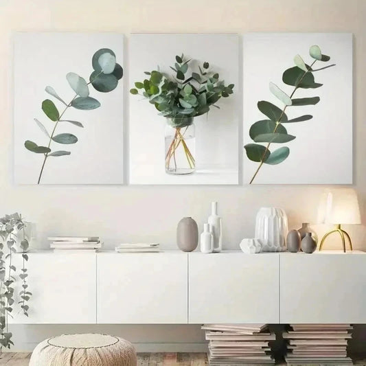 3pcs Eucalyptus Leaves, Hanging Vines Wall Art Set Canvas Framed 40x60cm - High Quality Print 100% Australian Made Wall Canvas Ready to Hang