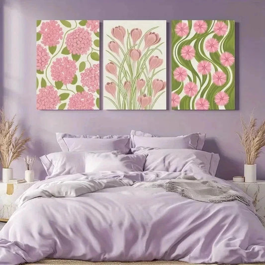 3pcs Hydrangea, Crocus, Dianthus Wall Art Set Canvas Framed 40x60cm - High Quality Print 100% Australian Made Wall Canvas Ready to Hang
