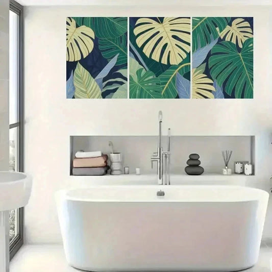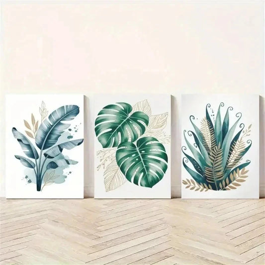 3pcs Monstera & Palm Leaf Wall Art Set Canvas Framed 40x60cm - High Quality Print 100% Australian Made Wall Canvas Ready to Hang