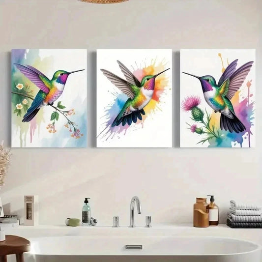 3pcs Vibrant Hummingbird Canvas Wall Art Set Canvas Framed 40x60cm - High Quality Print 100% Australian Made Wall Canvas Ready to Hang