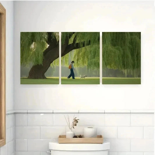 3pcs Willow Tree Walking Dog Canvas Wall Art Set Canvas Framed 40x60cm - High Quality Print 100% Australian Made Wall Canvas Ready to Hang