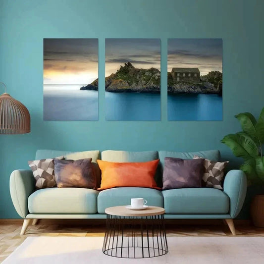 3pcs serene Harbor & Rocky Coastline Wall Art Set Canvas Framed 40x60cm - High Quality Print 100% Australian Made Wall Canvas Ready to Hang
