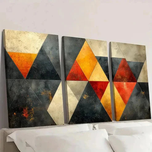 3pcs Mid Century Polygon Pattern YU Wall Art Set Canvas Unframed - High Quality Print 100% Australian Made Wall Canvas