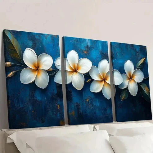 3pcs White Plumeria Flower Tropical Blue ER Wall Art Set Canvas Unframed - High Quality Print 100% Australian Made Wall Canvas