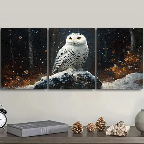 3pcs Snowy Owl in Forest Wall Art Set Canvas Unframed - High Quality Print 100% Australian Made Wall Canvas