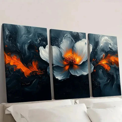 3pcs Beige Flower Art Flower Orange A Wall Art Set Canvas Unframed - High Quality Print 100% Australian Made Wall Canvas