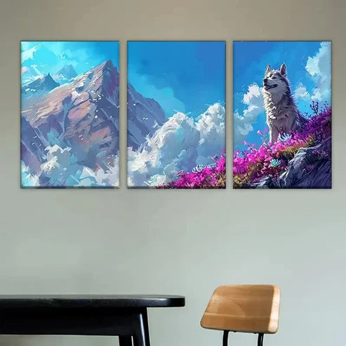 3pcs laptop with wolf Wall Art Set Canvas Unframed - High Quality Print 100% Australian Made Wall Canvas