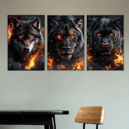 3pcs Three Wolves in Flames Wall Art Set Canvas Unframed - High Quality Print 100% Australian Made Wall Canvas