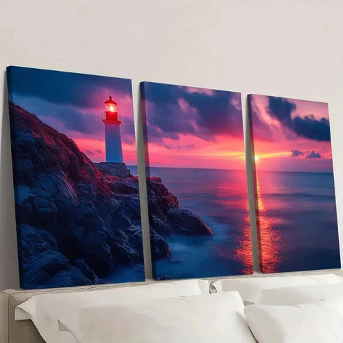 3pcs Tranquil Beacon Lighthouse F Wall Art Set Canvas Unframed - High Quality Print 100% Australian Made Wall Canvas