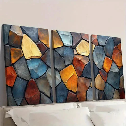 3pcs Century Polygon Pattern Sketch Abstract V Wall Art Set Canvas Unframed - High Quality Print 100% Australian Made Wall Canvas