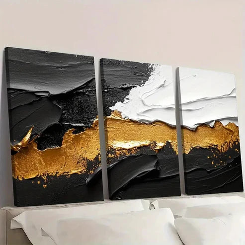 3pcs Black and White Abstract Texture SD Wall Art Set Canvas Unframed - High Quality Print 100% Australian Made Wall Canvas