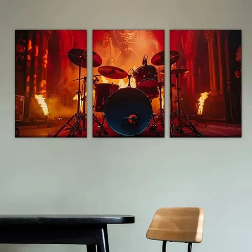 3pcs Burning Drum Set in a Dimly Lit Space Wall Art Set Canvas Unframed - High Quality Print 100% Australian Made Wall Canvas