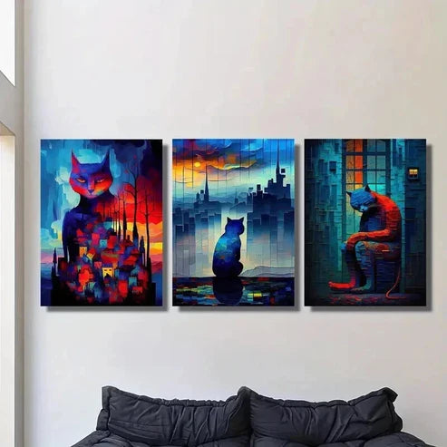 3pcs Lonely Cat Under Fantasy Night Wall Art Canvas Unframed - High Quality Print 100% Australian Made Wall Canvas