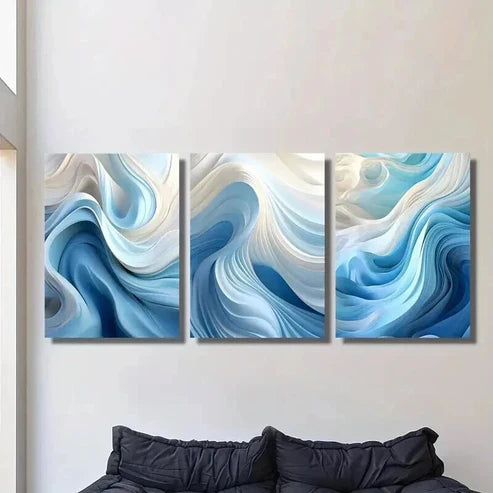 3pcs Abstract Blue and White Swirl Wave Wall Art Canvas Unframed - High Quality Print 100% Australian Made Wall Canvas