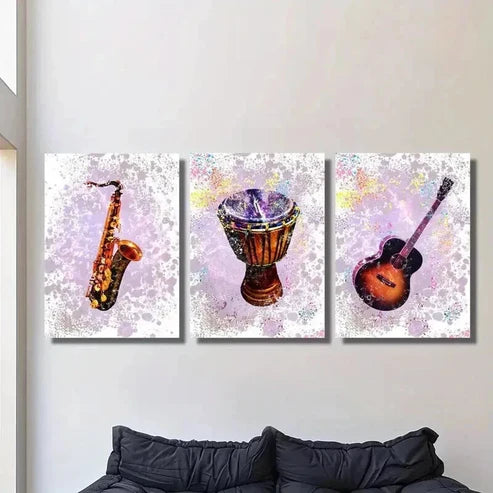 3pcs Saxophone Bass Drum Guitar Instrument Wall Art Canvas Unframed - High Quality Print 100% Australian Made Wall Canvas