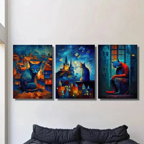 3pcs Cat Sitting on the Roof Starry Night Sky Wall Art Canvas Unframed - High Quality Print 100% Australian Made Wall Canvas