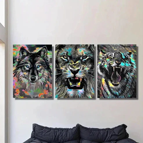 3pcs Wolf Lion and Tiger Head Portraits Wall Art Canvas Unframed - High Quality Print 100% Australian Made Wall Canvas