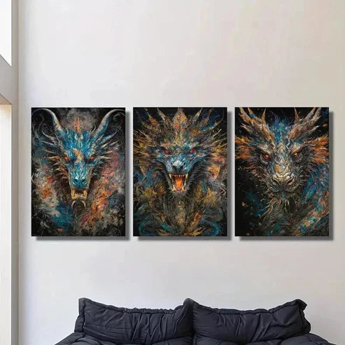 3pcs Colorful Fantasy Dragon Illustrations Wall Art Canvas Unframed - High Quality Print 100% Australian Made Wall Canvas