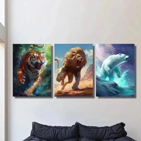 3pcs Ferocious Tiger Lion and Polar Bear Wall Art Canvas Unframed - High Quality Print 100% Australian Made Wall Canvas