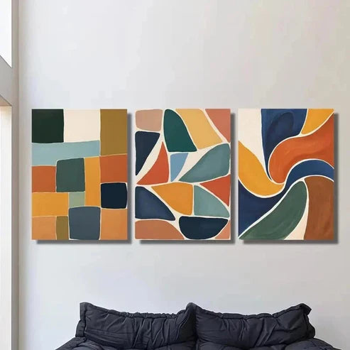 3pcs Retro Abstract Multi Color Block Geometric Wall Art Canvas Unframed - High Quality Print 100% Australian Made Wall Canvas