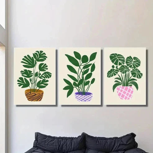 3pcs Monstera Deliciosa in a Flower Pot Wall Art Canvas Unframed - High Quality Print 100% Australian Made Wall Canvas