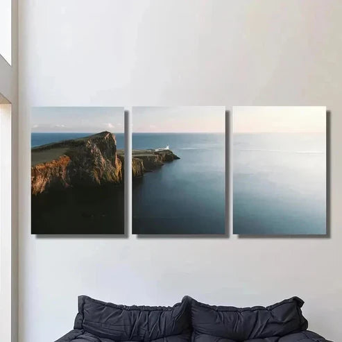 3pcs Cape Blue Sea Coastal Cliffs Wall Art Canvas Unframed - High Quality Print 100% Australian Made Wall Canvas