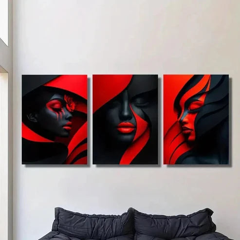 3pcs Geometric Black and Red Abstract Women Wall Art Canvas Unframed - High Quality Print 100% Australian Made Wall Canvas