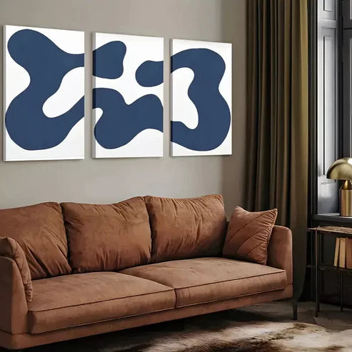 3pcs Navy Blue Abstract Contemporary Modern Shapes Art Wall Art Set Canvas Unframed - High Quality Print 100% Australian Made Wall Canvas