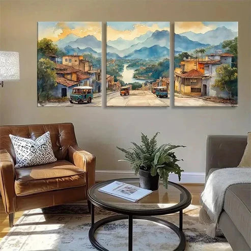 3pcs Vintage Mountain Street Colorful Prefect Wall Art Canvas Unframed - High Quality Print 100% Australian Made Wall Canvas