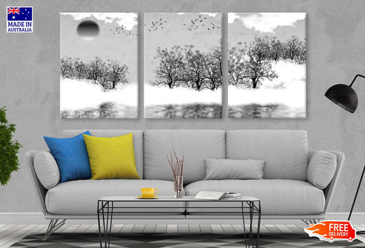 3 Set of Trees with birds & Sun Vector Art High Quality Print 100% Australian Made Wall Canvas Ready to Hang