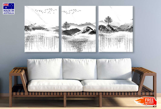 3 Set of Trees on Mountains Illustration High Quality Print 100% Australian Made Wall Canvas Ready to Hang
