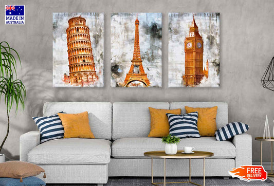 3 Set of Watercolor Clock Tower High Quality Print 100% Australian Made Wall Canvas Ready to Hang