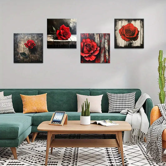 4pcs Red Rose Decorative Artwork Wall Art Canvas Framed