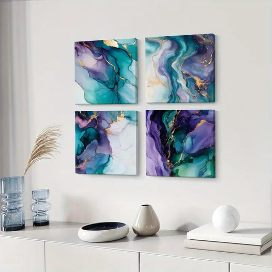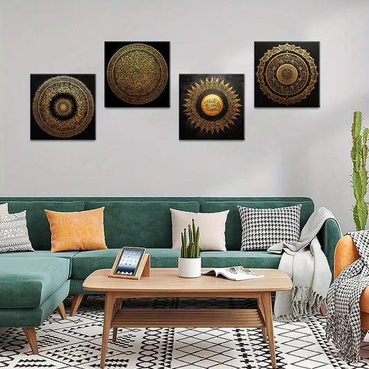 4pcs Golden Accents Square Wall Art Canvas Framed