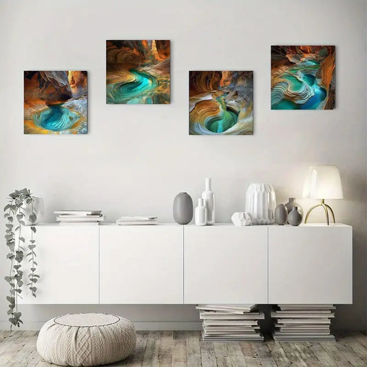 4pcs Aerial View Rock Cave Water Scenes Wall Art Canvas Framed